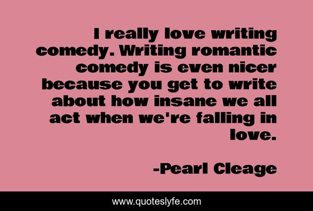 This page presents the quote "I really love writing comedy. Writing romantic comedy is even nicer because you get to write about how insane we all act when we're falling in love.". Author of this quote is Pearl Cleage. This quote is about love, affection, writing,.