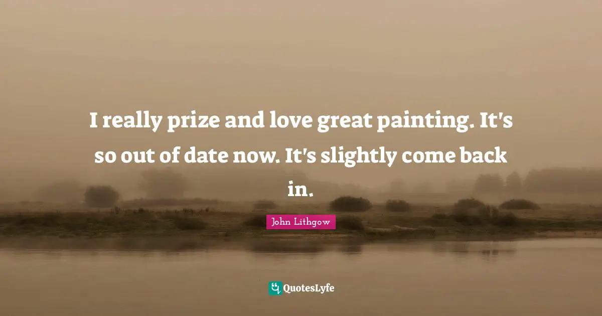 This page presents the quote "I really prize and love great painting. It's so out of date now. It's slightly come back in.". Author of this quote is John Lithgow. This quote is about painting, prize, and love,.