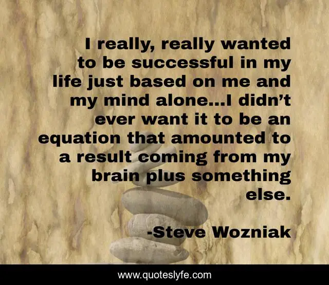 This page presents the quote "I really, really wanted to be successful in my life just based on me and my mind alone…I didn’t ever want it to be an equation that amounted to a result coming from my brain plus something else.". Author of this quote is Steve Wozniak. This quote is about drugs, brain, ethics, success,.