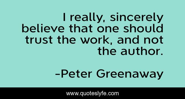 This page presents the quote "I really, sincerely believe that one should trust the work, and not the author.". Author of this quote is Peter Greenaway. This quote is about movies, art,.