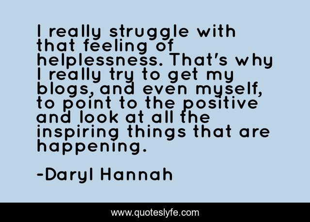 This page presents the quote "I really struggle with that feeling of helplessness. That's why I really try to get my blogs, and even myself, to point to the positive and look at all the inspiring things that are happening.". Author of this quote is Daryl Hannah. This quote is about myself, struggle, why,.
