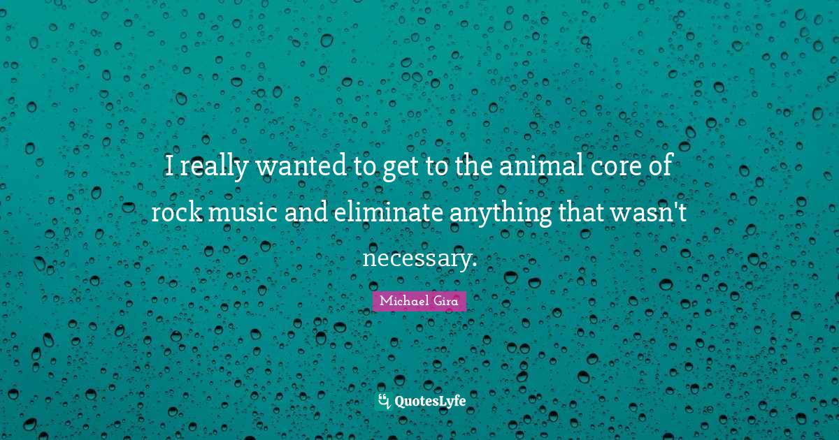 This page presents the quote "I really wanted to get to the animal core of rock music and eliminate anything that wasn't necessary.". Author of this quote is Michael Gira. This quote is about animal, rock music, rocks, wanted, core,.