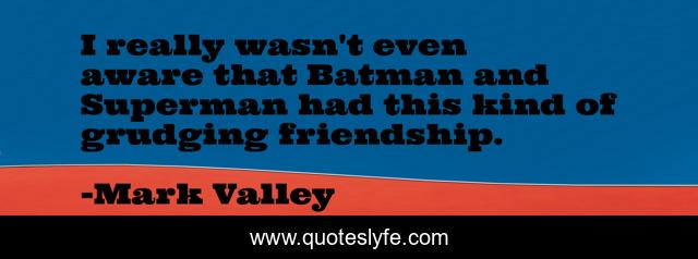 This page presents the quote "I really wasn't even aware that Batman and Superman had this kind of grudging friendship.". Author of this quote is Mark Valley. This quote is about batman, kind, superman,.
