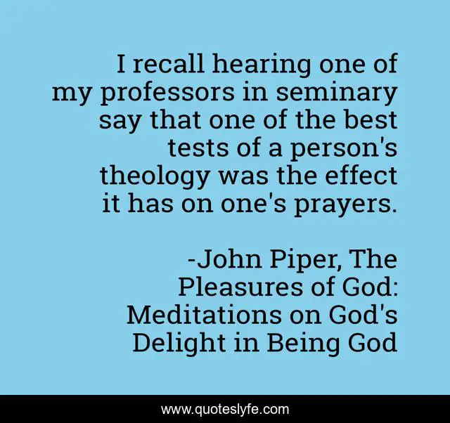 This page presents the quote "I recall hearing one of my professors in seminary say that one of the best tests of a person's theology was the effect it has on one's prayers.". Author of this quote is John Piper, The Pleasures of God: Meditations on God's Delight in Being God. This quote is about prayer, theology,.