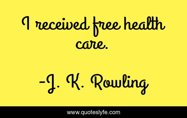 This page presents the quote "I received free health care.". Author of this quote is J. K. Rowling. This quote is about health care, free, care,.