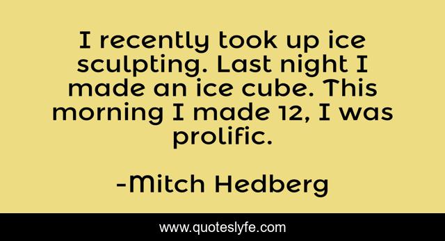 This page presents the quote "I recently took up ice sculpting. Last night I made an ice cube. This morning I made 12, I was prolific.". Author of this quote is Mitch Hedberg. This quote is about last, up, night,.