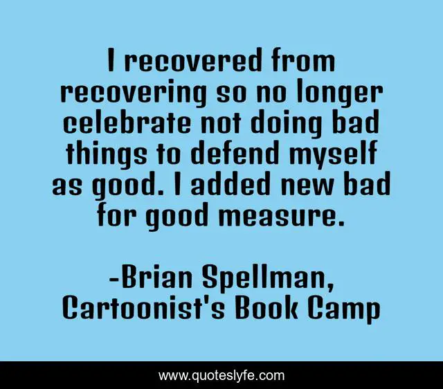 "Brian Spellman, Cartoonist's Book Camp Quotes." Quoteslyfe.com, 2025. Fri. 05 Dec. 2025. <https://www.quoteslyfe.com/quote/I-recovered-from-recovering-so-no-longer-223839>.