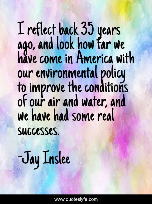 This page presents the quote "I reflect back 35 years ago, and look how far we have come in America with our environmental policy to improve the conditions of our air and water, and we have had some real successes.". Author of this quote is Jay Inslee. This quote is about water, america, look,.