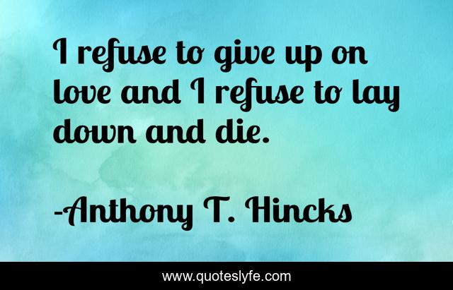 This page presents the quote "I refuse to give up on love and I refuse to lay down and die.". Author of this quote is Anthony T. Hincks. This quote is about life, death, love, lay-down, die, philosophy, refuse, determination, give-up,.