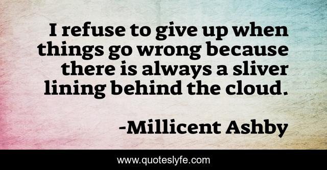 This page presents the quote "I refuse to give up when things go wrong because there is always a sliver lining behind the cloud.". Author of this quote is Millicent Ashby. .