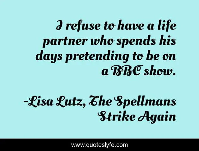 "Lisa Lutz, The Spellmans Strike Again Quotes." Quoteslyfe.com, 2025. Mon. 08 Dec. 2025. <https://www.quoteslyfe.com/quote/I-refuse-to-have-a-life-partner-149201>.