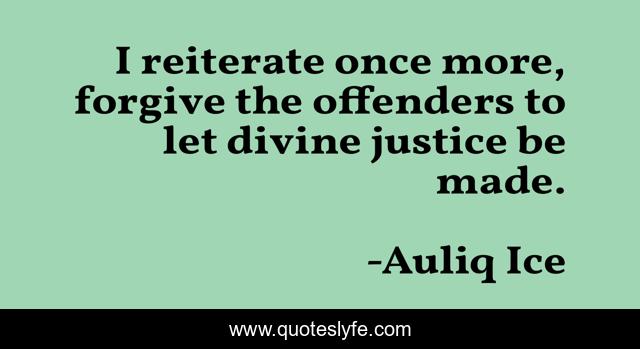 This page presents the quote "I reiterate once more, forgive the offenders to let divine justice be made.". Author of this quote is Auliq Ice. This quote is about judgement, judging-people, judging-others,.