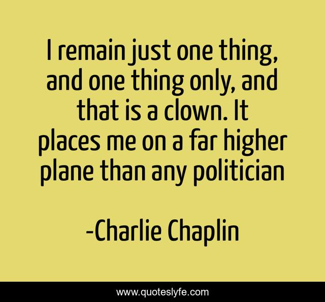 This page presents the quote "I remain just one thing, and one thing only, and that is a clown. It places me on a far higher plane than any politician". Author of this quote is Charlie Chaplin. This quote is about politicians, self-image,.
