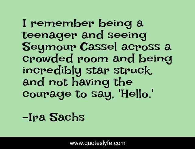 This page presents the quote "I remember being a teenager and seeing Seymour Cassel across a crowded room and being incredibly star struck, and not having the courage to say, 'Hello.'". Author of this quote is Ira Sachs. This quote is about seeing, remember, hello,.