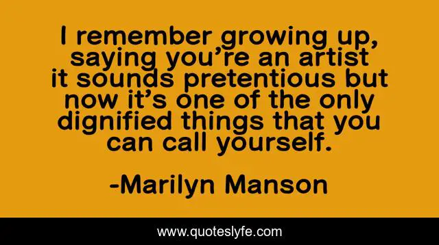 This page presents the quote "I remember growing up, saying you’re an artist it sounds pretentious but now it’s one of the only dignified things that you can call yourself.". Author of this quote is Marilyn Manson. This quote is about philosophy, art, wisdom,.