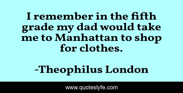 This page presents the quote "I remember in the fifth grade my dad would take me to Manhattan to shop for clothes.". Author of this quote is Theophilus London. This quote is about me, remember, clothes,.