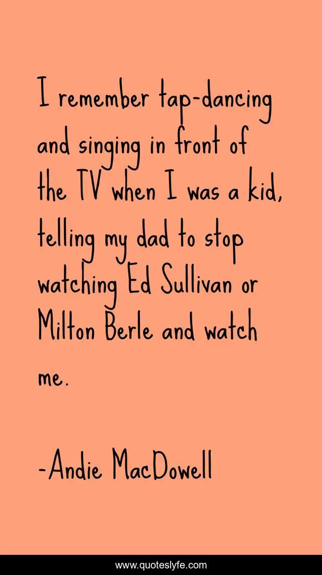 This page presents the quote "I remember tap-dancing and singing in front of the TV when I was a kid, telling my dad to stop watching Ed Sullivan or Milton Berle and watch me.". Author of this quote is Andie MacDowell. This quote is about me, singing, remember,.