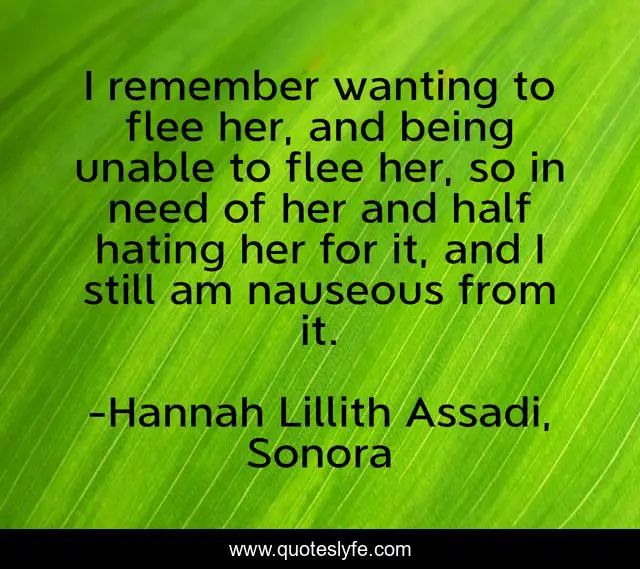 "Hannah Lillith Assadi, Sonora Quotes." Quoteslyfe.com, 2025. Sun. 07 Dec. 2025. <https://www.quoteslyfe.com/quote/I-remember-wanting-to-flee-her-and-120185>.