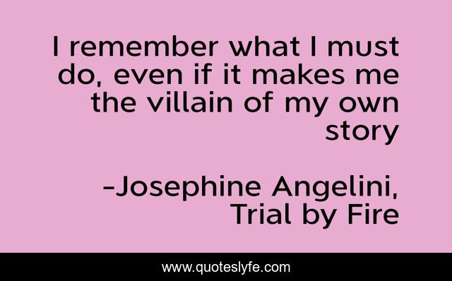 This page presents the quote "I remember what I must do, even if it makes me the villain of my own story". Author of this quote is Josephine Angelini, Trial by Fire. This quote is about magic, persistence,.