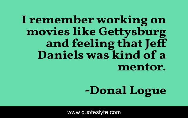 This page presents the quote "I remember working on movies like Gettysburg and feeling that Jeff Daniels was kind of a mentor.". Author of this quote is Donal Logue. This quote is about remember, working, mentor,.