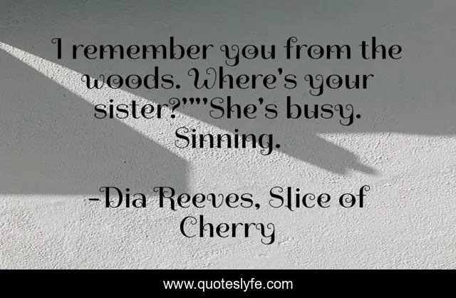 This page presents the quote "I remember you from the woods. Where's your sister?""She's busy. Sinning.". Author of this quote is Dia Reeves, Slice of Cherry. .