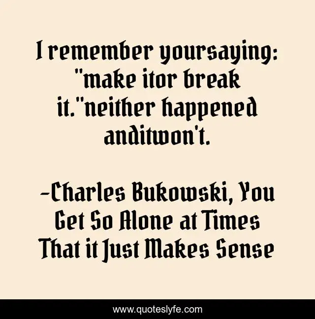 "Charles Bukowski, You Get So Alone at Times That it Just Makes Sense Quotes." Quoteslyfe.com, 2025. Fri. 05 Dec. 2025. <https://www.quoteslyfe.com/quote/I-remember-yoursaying-make-itor-break-it-25438>.