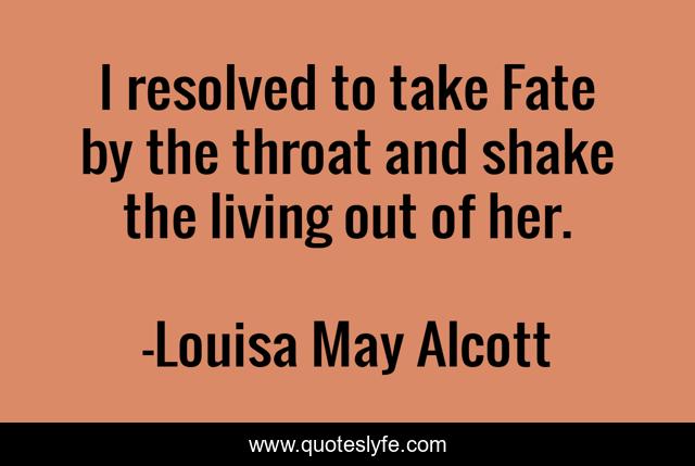 This page presents the quote "I resolved to take Fate by the throat and shake the living out of her.". Author of this quote is Louisa May Alcott. .