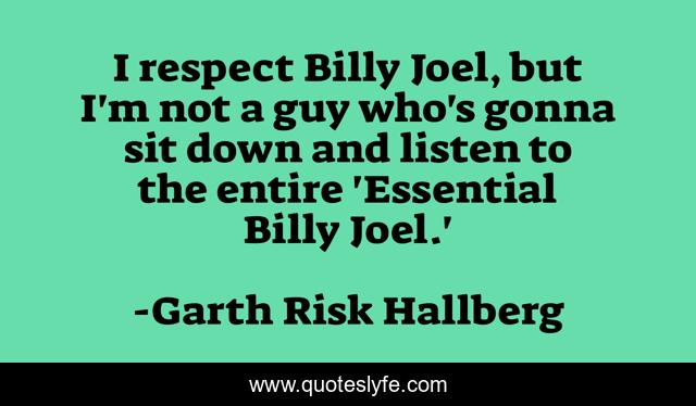 "Garth Risk Hallberg Quotes." Quoteslyfe.com, 2025. Mon. 08 Dec. 2025. <https://www.quoteslyfe.com/quote/I-respect-Billy-Joel-but-I-m-283657>.