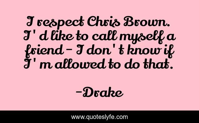 This page presents the quote "I respect Chris Brown. I'd like to call myself a friend - I don't know if I'm allowed to do that.". Author of this quote is Drake. This quote is about myself, friend,.