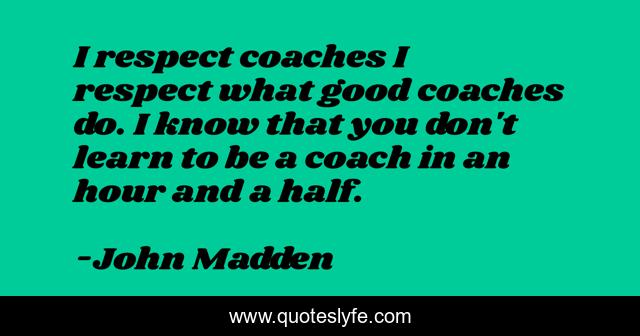 This page presents the quote "I respect coaches I respect what good coaches do. I know that you don't learn to be a coach in an hour and a half.". Author of this quote is John Madden. .