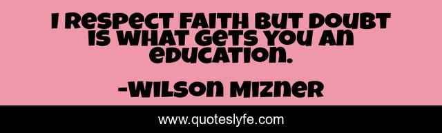 This page presents the quote "I respect faith but doubt is what gets you an education.". Author of this quote is Wilson Mizner. .