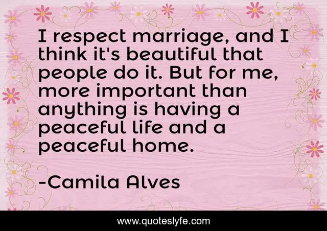This page presents the quote "I respect marriage, and I think it's beautiful that people do it. But for me, more important than anything is having a peaceful life and a peaceful home.". Author of this quote is Camila Alves. This quote is about home, life, marriage,.