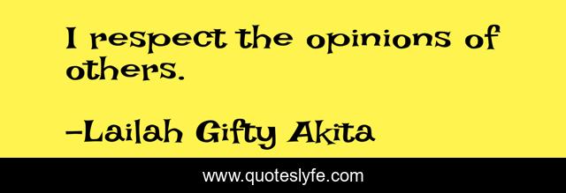 This page presents the quote "I respect the opinions of others.". Author of this quote is Lailah Gifty Akita. This quote is about opinions, advice, opinions-lailah-gifty-akita,.