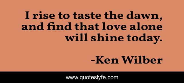 This page presents the quote "I rise to taste the dawn, and find that love alone will shine today.". Author of this quote is Ken Wilber. This quote is about rise, love, today, affection,.