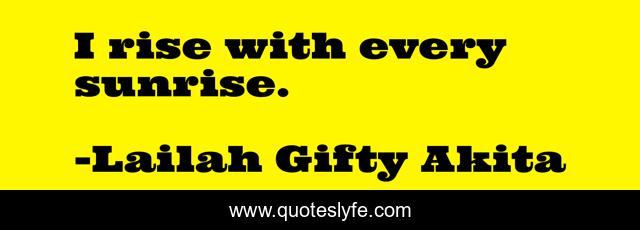 "Lailah Gifty Akita Quotes." Quoteslyfe.com, 2025. Sat. 06 Dec. 2025. <https://www.quoteslyfe.com/quote/I-rise-with-every-sunrise-207486>.