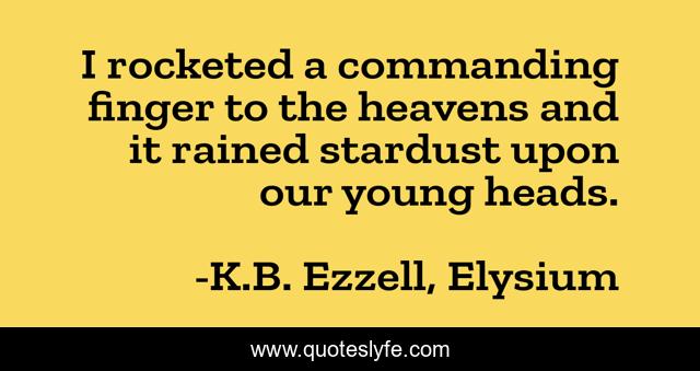 "K.B. Ezzell, Elysium Quotes." Quoteslyfe.com, 2025. Fri. 05 Dec. 2025. <https://www.quoteslyfe.com/quote/I-rocketed-a-commanding-finger-to-the-195256>.