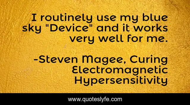 "Steven Magee, Curing Electromagnetic Hypersensitivity Quotes." Quoteslyfe.com, 2025. Fri. 05 Dec. 2025. <https://www.quoteslyfe.com/quote/I-routinely-use-my-blue-sky-Device-118709>.