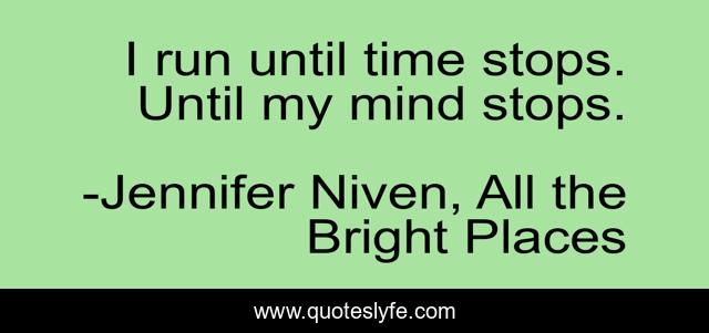"Jennifer Niven, All the Bright Places Quotes." Quoteslyfe.com, 2025. Fri. 05 Dec. 2025. <https://www.quoteslyfe.com/quote/I-run-until-time-stops-Until-my-87461>.