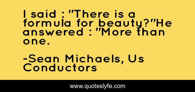 This page presents the quote "I said : "There is a formula for beauty?"He answered : "More than one.". Author of this quote is Sean Michaels, Us Conductors. .