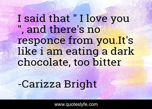 This page presents the quote "I said that " I love you ", and there's no responce from you.It's like i am eating a dark chocolate, too bitter". Author of this quote is Carizza Bright. This quote is about pain, sadness, unloved,.