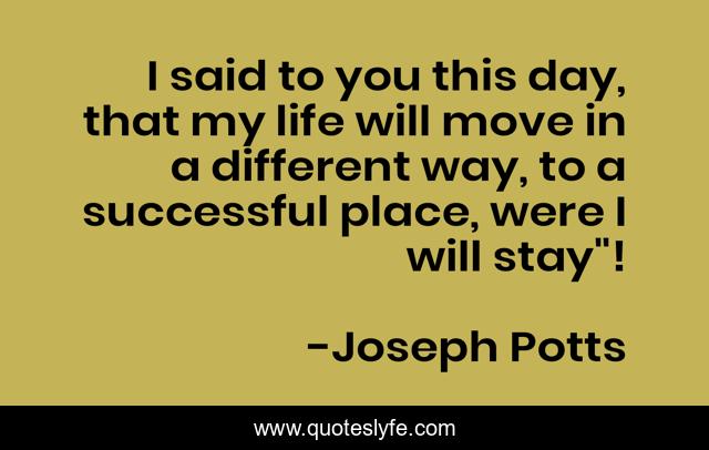 This page presents the quote "I said to you this day, that my life will move in a different way, to a successful place, were I will stay"!". Author of this quote is Joseph Potts. .