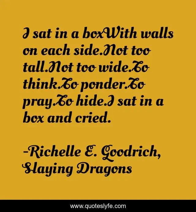 "Richelle E. Goodrich, Slaying Dragons Quotes." Quoteslyfe.com, 2025. Sun. 07 Dec. 2025. <https://www.quoteslyfe.com/quote/I-sat-in-a-boxWith-walls-on-114742>.