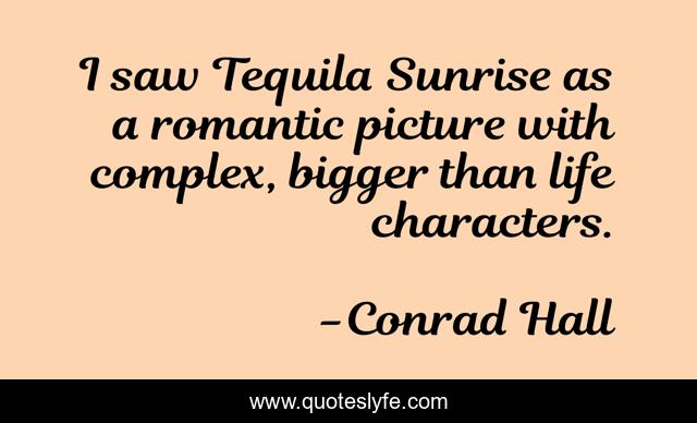 This page presents the quote "I saw Tequila Sunrise as a romantic picture with complex, bigger than life characters.". Author of this quote is Conrad Hall. This quote is about picture, life, sunrise,.