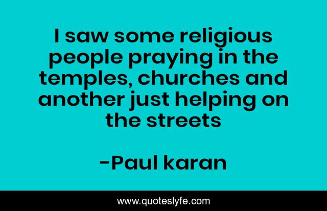 This page presents the quote "I saw some religious people praying in the temples, churches and another just helping on the streets". Author of this quote is Paul karan. This quote is about poor, god, love, help, affection,.