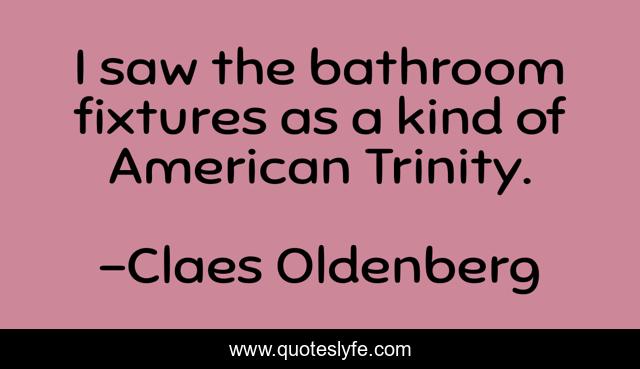 This page presents the quote "I saw the bathroom fixtures as a kind of American Trinity.". Author of this quote is Claes Oldenberg. This quote is about architecture, architects,.