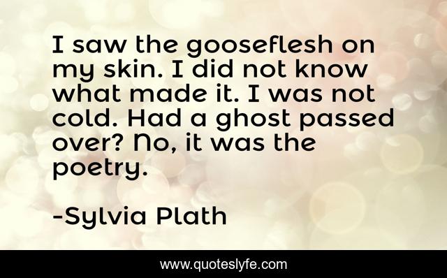 This page presents the quote "I saw the gooseflesh on my skin. I did not know what made it. I was not cold. Had a ghost passed over? No, it was the poetry.". Author of this quote is Sylvia Plath. This quote is about ghost, skin,.