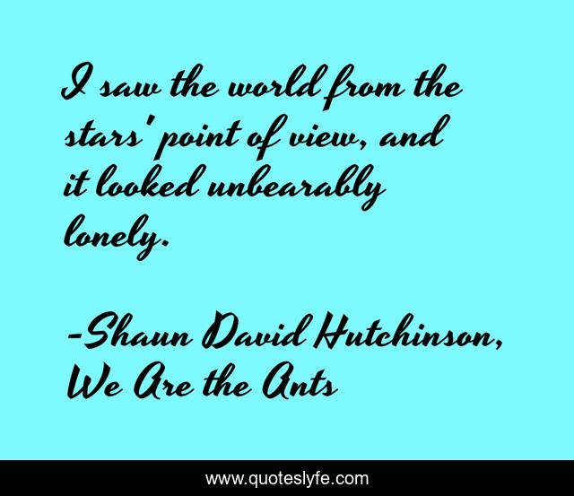 "Shaun David Hutchinson, We Are the Ants Quotes." Quoteslyfe.com, 2025. Fri. 05 Dec. 2025. <https://www.quoteslyfe.com/quote/I-saw-the-world-from-the-stars-3226>.
