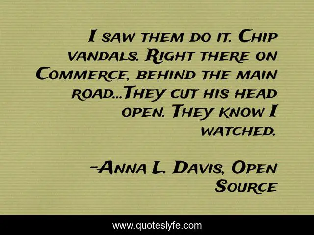 "Anna L. Davis, Open Source Quotes." Quoteslyfe.com, 2025. Sat. 06 Dec. 2025. <https://www.quoteslyfe.com/quote/I-saw-them-do-it-Chip-vandals-102646>.