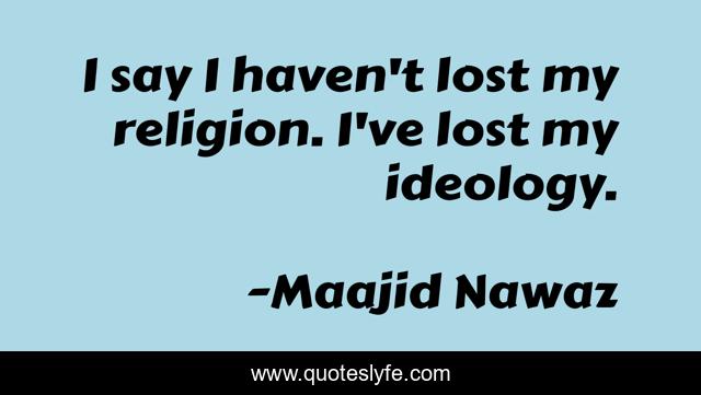 This page presents the quote "I say I haven't lost my religion. I've lost my ideology.". Author of this quote is Maajid Nawaz. This quote is about ideology, lost,.
