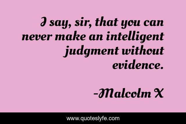 This page presents the quote "I say, sir, that you can never make an intelligent judgment without evidence.". Author of this quote is Malcolm X. This quote is about assume, evidence, judgement, assumptions, truth, judge, malcolm-x, intelligent,.